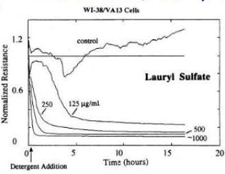上圖是十二烷基磺酸鈉對(duì)WI-38細(xì)胞的作用,可以看出這種化合物對(duì)細(xì)胞的生長(zhǎng)有著明顯的抑制作用,并且濃度越高抑制效果越顯著。